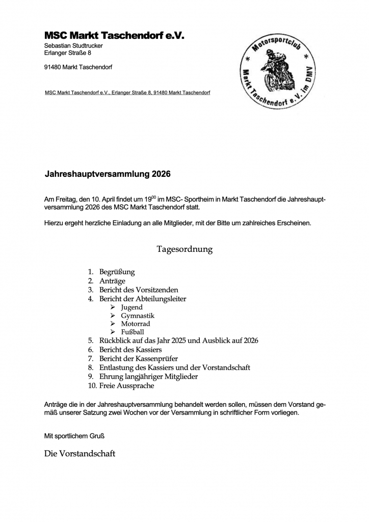 Willkommen auf der Website des MSC Markt Taschendorf